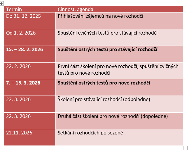 Vypsané termíny na rok 2026 pro stávají a nové rozhodčí – AKTUALIZACE
